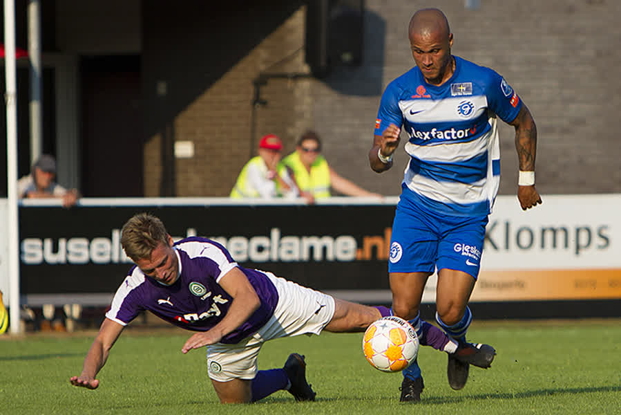 De Groningers grepen al vroeg in het duel de voorsprong. Na tien minuten spelen reageerde Michael Breij scherp bij een lange bal van achteruit en plaatste de bal in de verre hoek: 0-1. Twintig minuten later scoorden de Noorderlingen opnieuw. Ditmaal was Django Warmerdam trefzeker als eindstation van een fraaie combinatie tussen Tom van Weert en Ritsu Doan. Hoewel Youssef El Jebli en Stef Nijland dichtbij waren, werd er voor rust niet meer gescoord.