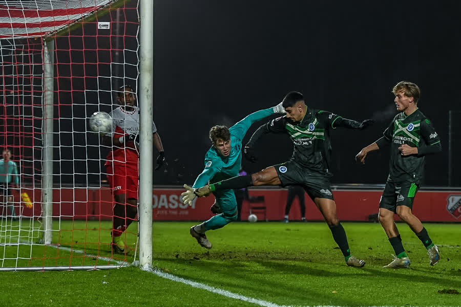 In de tweede helft voetbalden de Achterhoekers wel wat opportunistischer. In de eerste minuten na de hervatting liet Kaya Simons met een fraai schot de supporters in het bezoekersvak even opveren. Maar de uitstekend keepende Thom de Graaff voorkwam de gelijkmaker.Die gelijkmaker viel uiteindelijk pas in de 86ste minuut, toen Blnd Hassan profiteerde van het feit dat Jong FC Utrecht de bal niet weggewerkt kreeg.