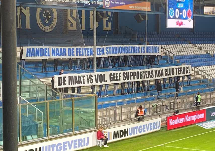In het statement laten de supporters ook horen dat ze het niet eens zien met de handelswijze van de club: “Alle, maar dan ook alle seizoenkaarthouders moeten per direct weer plaats kunnen nemen op De Vijverberg en zolang de club zich hiervoor naar buiten toe niet hard maakt en met nietszeggende spierbalentaal komt, blijft de Spinside gesloten.” De supporters laten weten een actie voor te bereiden rond de wedstrijd van vrijdagavond. Eerder was er al een statement rond het thuisduel met Almere City.