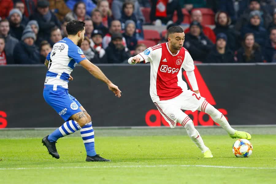 De Graafschap kwam het eerste kwartier nog schadevrij door. Daryl van Mieghem had zelfs de grootste kans op de openingstreffer, maar de rappe aanvaller kwam niet verder dan een rolletje oog in oog met doelman Andre Onana. Na een kwartier was het ook gedaan met de Doetinchemse hoop op een resultaat en kwam Ajax - dat al enkele kleine kansen onbenut liet - op voorsprong. Na een panklare assist van Hakim Ziyech maakte Dusan Tadic na achttien minuten 1-0. De 2-0 volgde al snel, toen Noussair Mazraoui na een combinatie met Donny van de Beek binnenschoof. Ziyech maakte met een schuiver de derde treffer voor de rust.