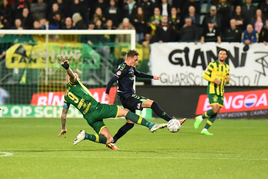 De eerste grote kans van de wedstrijd was voor de thuisploeg. Thomas Verheydt kon de bal met zijn borst controleren, maar Hidde Jurjus redde prima op zijn harde schot. De doelman was even later kansloos toen Jordy Wehrmann teveel ruimte kreeg op de rand van het strafschopgebied: 1-0. De gelijkmaker volgde vlak voor het half uur. Na slecht verdedigen kwam de bal voor de voeten terecht van Basar Önal. De jonge vleugelaanvaller twijfelde niet en schoot zijn eerste doelpunt van het seizoen binnen. Camiel Neghli werd voor rust nog gevaarlijk, maar zijn schot ging voorlangs.