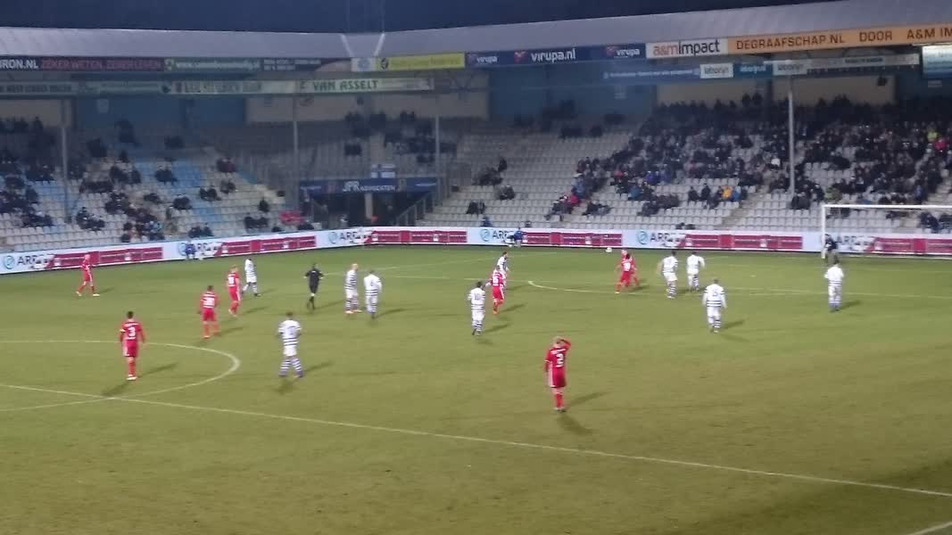 De eerste kans in de wedstrijd was voor Almere. Rick ten Voorde kon vrij inschieten, maar miste. Daarna leek De Graafschap wakker en was het op dreef. Dean Koolhof bracht de stand na een fraaie actie op 1-0, Youssef El Jebli werkte binnen het halfuur een voorzet van de linkerkant achter doelman Chiel Kramer: 2-0.