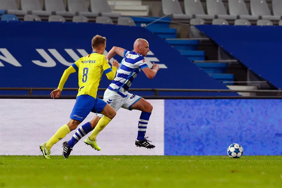De eerste dreiging van de wedstrijd kwam van De Graafschap. Aanvaller Daryl van Mieghem schoot na een korte draai net naast de goal van Cambuur Leeuwarden-doelman Sonny Stevens. Daarna waren het de gasten uit Leeuwarden die gevaarlijk werden. Middenvelder Jamie Jacobs testte de reflexen van De Graafschap-doelman Rody de Boer met een venijnig schot. Na een half uur kreeg verdediger Toine van Huizen een goede kans voor de Superboeren, zijn kopbal uit vrije positie ging echter voorlangs. Tien minuten voor rust leek Cambuur op voorsprong te komen toen Mitchell Paulissen van net binnen het zestienmetergebied uithaalde, wederom redde De Boer. De doelman was echter even later kansloos toen aanvoerder Erik Schouten van dichtbij raak schoot na een afgeslagen corner.