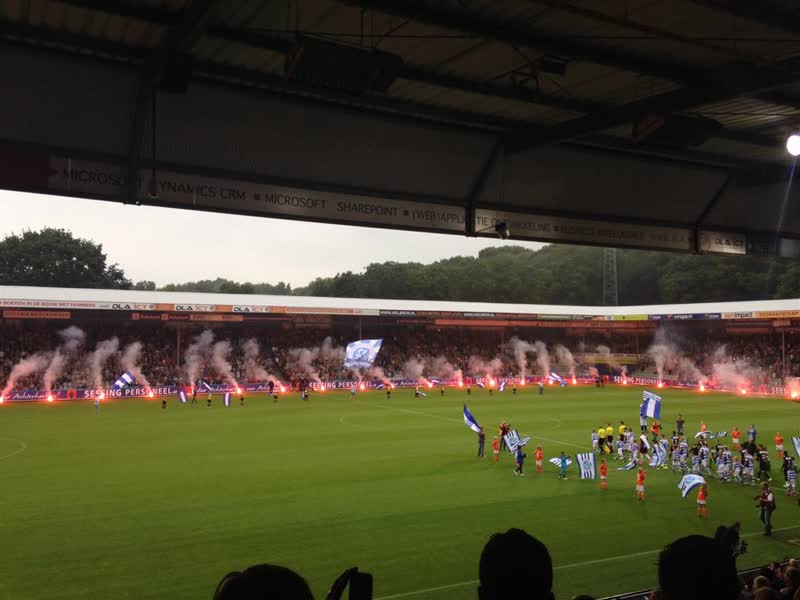 Iets maar dan achtduizend toeschouwers zagen na het vuurwerk dat De Graafschap in de eerste helft probeerde te voetballen, maar geen grote kansen kreeg. Ondanks het veldoverwicht van De Graafschap kreeg PEC Zwolle de grootste mogelijkheid, via een schot van buiten het zestienmetergebied. Lars Veldwijk schoot maar net langs de paal. Dean Koolhof viel uit met een liesblessure en moest zelfs met een brancard van het veld.