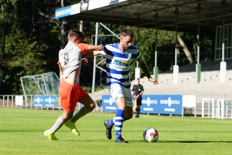 Toch gingen de Doetinchemmers met een voorsprong de rust in. Na een overtreding op Julian Lelieveld mocht Ralf Seuntjens in de 43e minuut vanaf de penaltystip aanleggen: 1-0. In de tweede helft bleef het spel van beide kanten slordig, waarbij De Graafschap het meeste balbezit had. Grote kansen waren er niet, terwijl de nodige wisselspelers aan beide kanten het veld inkwamen. Aanwinst Rick Dekker zat niet bij de wedstrijdselectie, hij werkt eerst aan zijn fitheid. Ook na het inbrengen van de nodige wissels werd er niet meer gescoord.