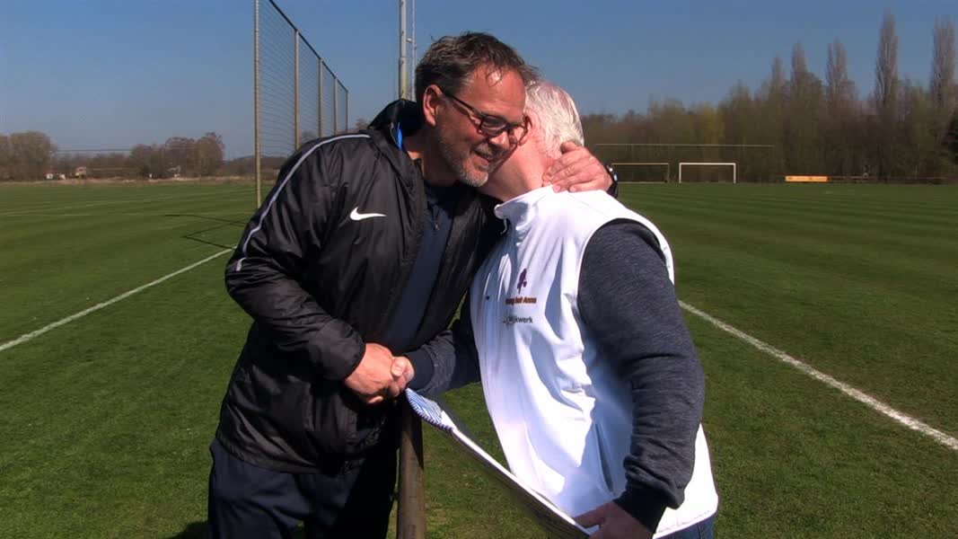 "Het is wel heel mooi", vertelt een geëmotioneerde Henk de Jong. "Je begint er gewoon van te zweten." De trainer kreeg in totaal 170 bedankjes die op de kaart stonden. De actie is een initiatief van Henk Meijer en Jeroen Hendriksen, die de kaart ook overhandigden aan De Jong. De Friese oefenmeester was onder de indruk van het geschenk. "Er waren zoveel berichten zag ik, dat doet je wel wat."