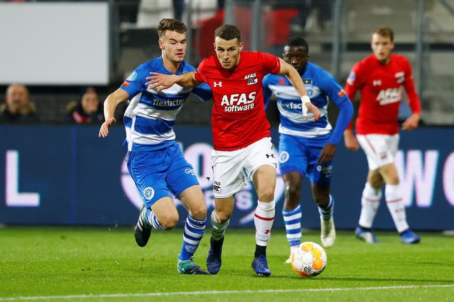In de saaie eerste helft kwam De Graafschap nauwelijks in de problemen. AZ domineerde en had ruim het veldoverwicht, maar wist zich niet door de blauwwitte muur uit Doetinchem te wurmen. De Superboeren stonden met negen defensief ingestelde spelers enorm verdedigend opgesteld. De enige keren dat de thuisploeg gevaarlijk werd, was bij schoten van afstand. Onder meer Calvin Stengs en Oussama Idrissi schoten hoog over. De Graafschap kwam er slechts heel spaarzaam uit, maar dat resulteerde in niks.