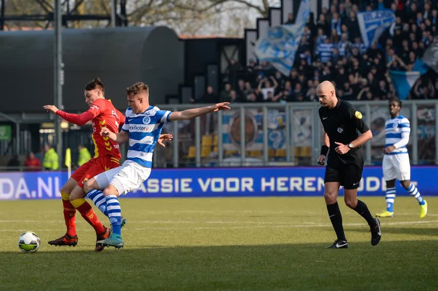 Kijken waar het schip strandtIn 2017 debuteerde Dieperink in de eredivisie, nadat hij in 2012 zijn intrede deed in het betaald voetbal. Gevraagd naar zijn doel, is hij voorzichtig. “Ik kijk eigenlijk nooit zo ver vooruit”, aldus de 31-jarige leidsman. “Als je kijkt naar bijvoorbeeld een enkelbreuk, dat kan zomaar roet in het eten gooien. Het zou heel mooi zijn als je Europees actief mag zijn, maar dat is slechts voor een enkeling weggelegd. Ik wil wel het maximale uit mijn carrière halen, maar wat dat kan zijn, zal de toekomst uitwijzen. Uit het toebedelen van Go Ahead-De Graafschap spreekt vertrouwen, en daar kijk ik met veel plezier naar uit.”