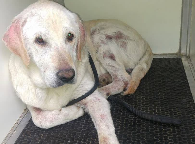 De Labrador heeft last van een huidinfectie, waardoor hij erg ziek was. “Uiteraard is deze hond door ons naar de dierenarts gebracht en wordt de behandeling ingezet.” De dierenpolitie is op zoek naar de eigenaar van de hond.