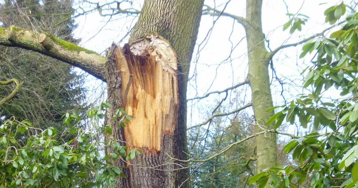 Foto: Bomenstichting Achterhoek. De boom op de foto is een eik en laat zien wat een plakoksel voor gevolg kan hebben.