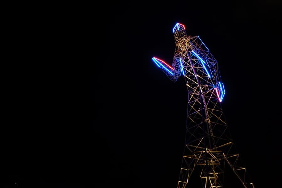 Het kunstwerk 'Shall we Dance', dat al in 2007 is opgeleverd langs de Energieweg in Doetinchem, is vanaf woensdag in de schijnwerpers gezet. Het 37 meter hoge kunstwerk is een blijvende herinnering aan de oude masten die in het landschap van Doetinchem stonden.