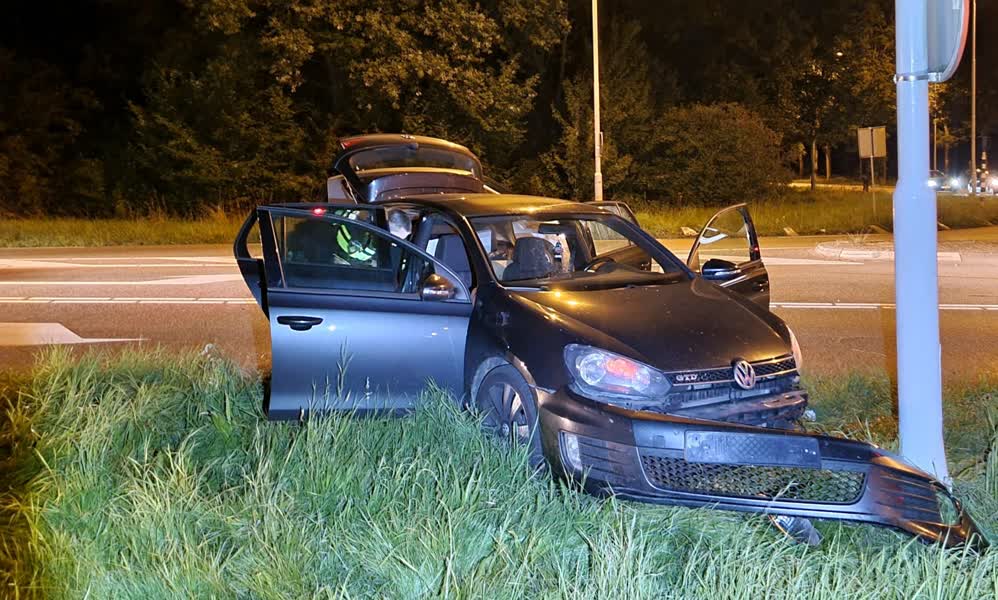 Het eenzijdige ongeval gebeurde rond 22.30 uur op de Europaweg, ter hoogte van de Liemersweg. De bestuurder kwam vanuit de richting van de brandweerkazerne aanrijden toen hij op de kruising over een vluchtheuvel reed en op de lantaarnpaal botste. De automobilist raakte gewond, maar probeerde desondanks de benen te menen. Mede door hulp van getuigen kregen agenten de man te pakken.