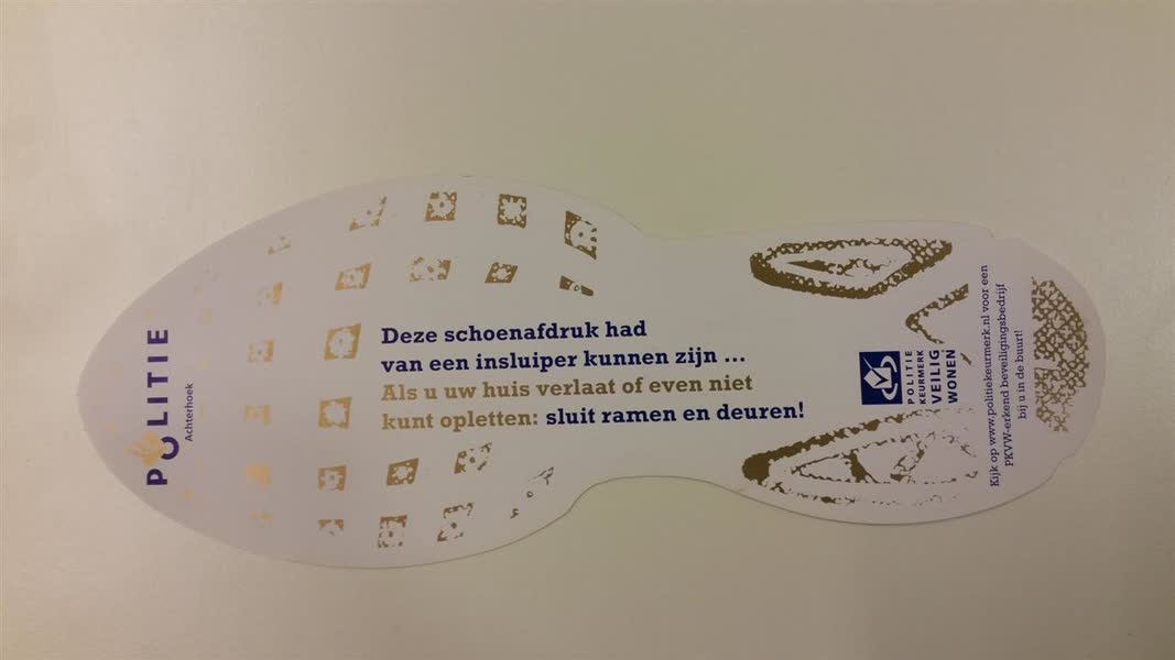 Om de bewoners attent te maken op de mogelijke gevaren zijn witte voetjes achter gelaten door de agenten. Daarnaast geeft de wijkagent ook nog extra tips om de kans op een inbraak te verminderen. “Laat niet merken dat er niemand thuis is. Laat automatisch lampen aan gaan.” Tot en met maart zal de politie deze preventieve acties houden om bewustwording te creëren en de kans op inbraak te verminderen.