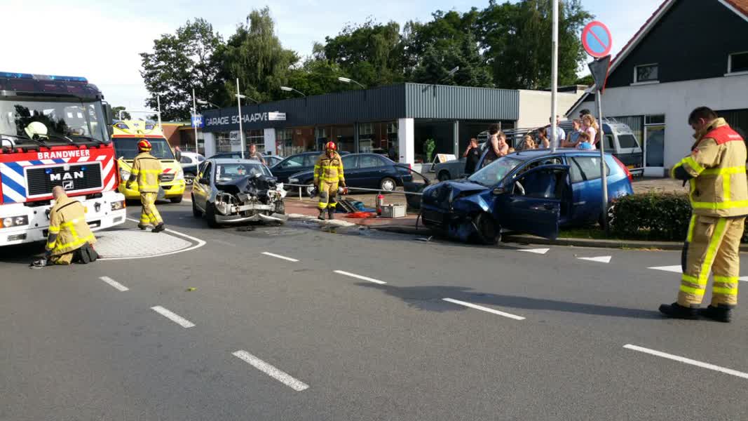 Drie inzittenden van beide voertuigen, twee vrouwen en een man, raakten gewond.