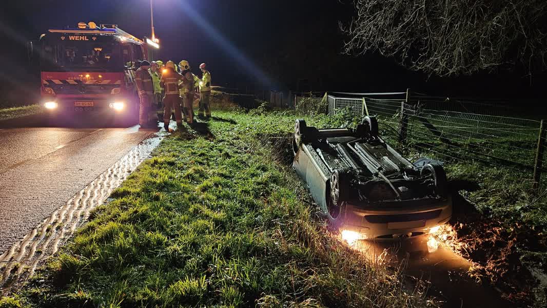 Bij een kop- staartbotsing op de Hengeloseweg bij Vorden is een gewonde gevallen. Ook raakten er dri...