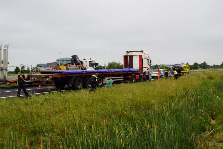 Een vrachtwagenchauffeur sloeg af naar een parkeerhaven op de N18, maar liet de daarachter rijdende bestuurders flink schrikken. De eerste auto wist op tijd te reageren en reed de vrachtwagen voorbij, de daaropvolgende auto remde en werd achterop geraakt door een andere personenwagen die de botsing niet meer kon voorkomen. De vierde auto in de rij week uit naar rechts en knalde zo achterop de vrachtwagen op de parkeerhaven.