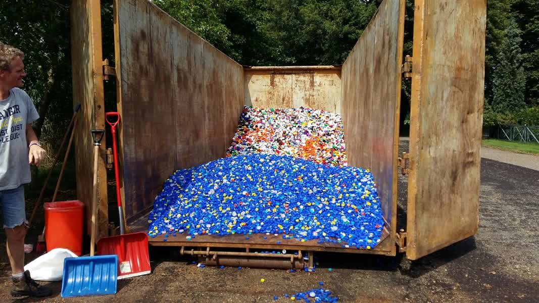 Bij de uitgifte van flesjes op het festivalterrein hielden de medewerkers de doppen apart. Dat resulteerde in zo'n 650 kilo aan plastic voor het KNGF. Aangezien de dop van een flesje water twee gram weegt en die volgens inzamelaar Francis Bonenkamp veruit het meest waren verzameld, komt dat neer op ruim 30.000 doppen.
