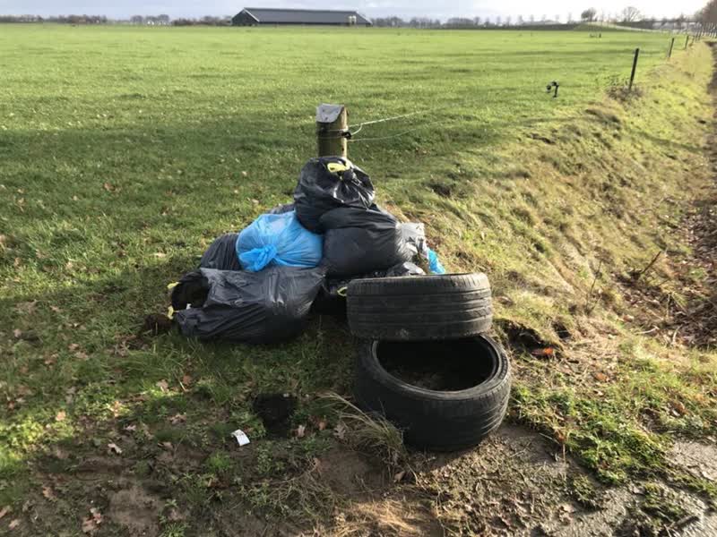 Het afval werd gevonden door een voorbijganger, die de politie waarschuwde. Bij het afval zit ook potgrond, daarom werd gedacht dat het mogelijk afkomstig was van een hennepkwekerij. Verder liggen er autobanden en vuilniszakken bij het afval.