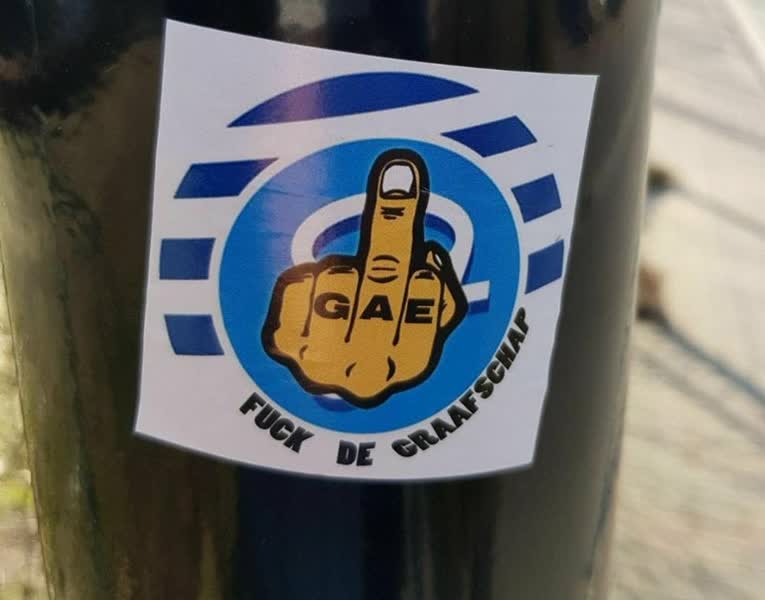 De ‘stickeractie’ is een voorbode voor de wedstrijd van zondag. De Graafschap speelt dan in Deventer de beladen wedstrijd tegen Go Ahead Eagles.