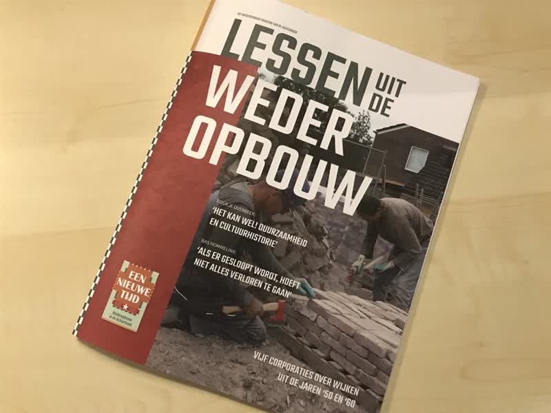 “We hebben samen met de woningcorporaties in de Achterhoek een magazine samengesteld”, vertelt Werner Weijkamp van Een Nieuwe Tijd over een van de dingen waar ze aan gewerkt hebben. “De woningbouwcorporaties hebben twintig tot dertig procent van de totale woningvoorraad in handen. Een groot deel komt uit die wederopbouwperiode. Je ziet daar ook de opgave die er is rond verduurzaming en dat hebben we nu samen met hen opgepakt.” In het magazine ‘Lessen uit de wederopbouw’ delen vijf organisaties hun ervaringen. “Om te vertellen hoe zij met hun erfgoed omgaan en vooral ook om te kijken hoe ze met die opgave aan de slag gegaan zijn met de kennis uit de periode van toen om die nu te gebruiken bij de aanpak van die wijken.”