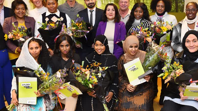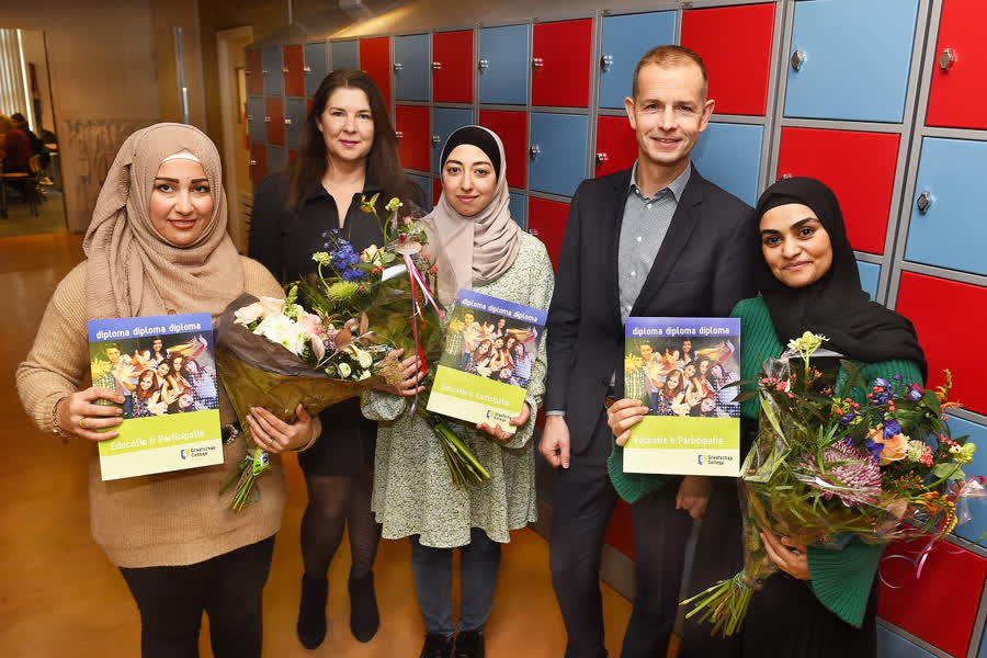 "Ik heb in korte tijd veel geleerd op school en van mijn begeleider", vertelt Samah Diab, een van de deelnemers die donderdag het diploma voor de versnelde mbo-opleiding Assistent Dienstverlening en Zorg in ontvangst nam. In totaal begonnen zeven deelnemers aan de opleiding, de andere twee hebben meer tijd nodig om deze ook af te ronden. Naast zorgtaken leerden de deelnemers ook de Nederlandse taal en cultuur kennen. "Het lukte steeds beter om Nederlands te praten", laat Diab weten. Ook het Achterhoekse dialect kwam voorbij, vooral 'luusteren' en 'kieken' vindt Diab leuk, ze kreeg van een van haar docenten een boekje met Achterhoekse spreekwoorden cadeau.