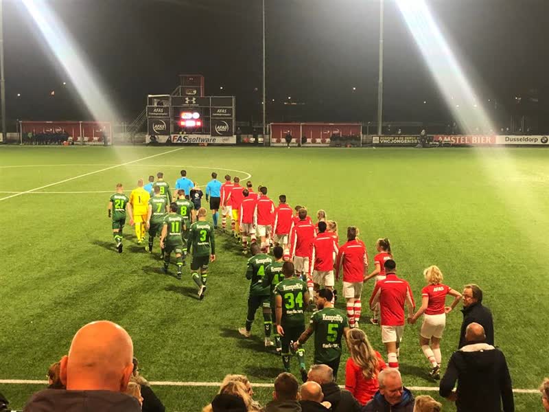 In de eerste helft was er nog niks aan de hand voor de Superboeren. Na een klein kwartier spelen zette aanvoerder Ralf Seuntjens de 0-1 op het bord, na een goede combinatie tussen Branco van den Boomen en Leeroy Owusu. De voorzet van Owusu kon door de spits zo worden binnengelopen. Daarna lieten met name Van den Boomen (schot op de vuisten van Rody de Boer) en Mohamed Hamdaoui (poging voorlangs) de kans op 0-2 liggen. Jong AZ werd daarna ook steeds dreigender: zo trof Tijjani Reijnders de vuisten van doelman Hidde Jurjus.