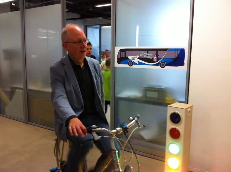 De jeugdige leerlingen maakten vandaag een hoop duurzame gadgets. Zo waren ze in de weer met een zonnewijzer, een caleidoscoop een kompas en hielden ze energietestjes. "Door te fietsen wekten ze wattage op en bekijken ze waar de energie beter behouden bleef: in een huis met óf zonder isolatie", aldus techniekleraar André Bijenhof.
