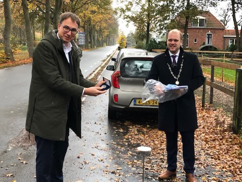 De erepenningen werden op de grens met Vreden (Holtwisch) en Südlohn-Oeding (Vedder) uitgereikt, samen met bijbehorende oorkonde en een bos bloemen. "Die krijgen een mooi plekje in huis", reageerde Holtwisch, die tegenwoordig professor is aan de universiteit voor politie en bestuurskunde in Mühlheim.