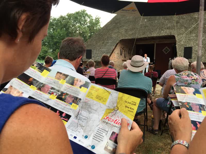 "Het Erfgoedfestival is een groot festival waarbij allerlei organisaties een activiteit ontwikkelen over grenzen", vertelt festivaldirecteur Dolly Verhoeven. "Dat kan van alles zijn. Een tentoonstelling, een lezing, een route. Zo hebben we meer dan tweehonderd activiteiten gehad in de afgelopen twee maanden." Het dialectfestival werd georganiseerd door de Dialectkring Achterhook en Liemers om de streektaal te belichten. Volgens hen is die taal nog redelijk populair. "Bij de Achterhoekers zelf wel", vertelt Diana Abbink van de Dialectkring. "Maar het wordt wel minder, zo eerlijk moeten we ook zijn."