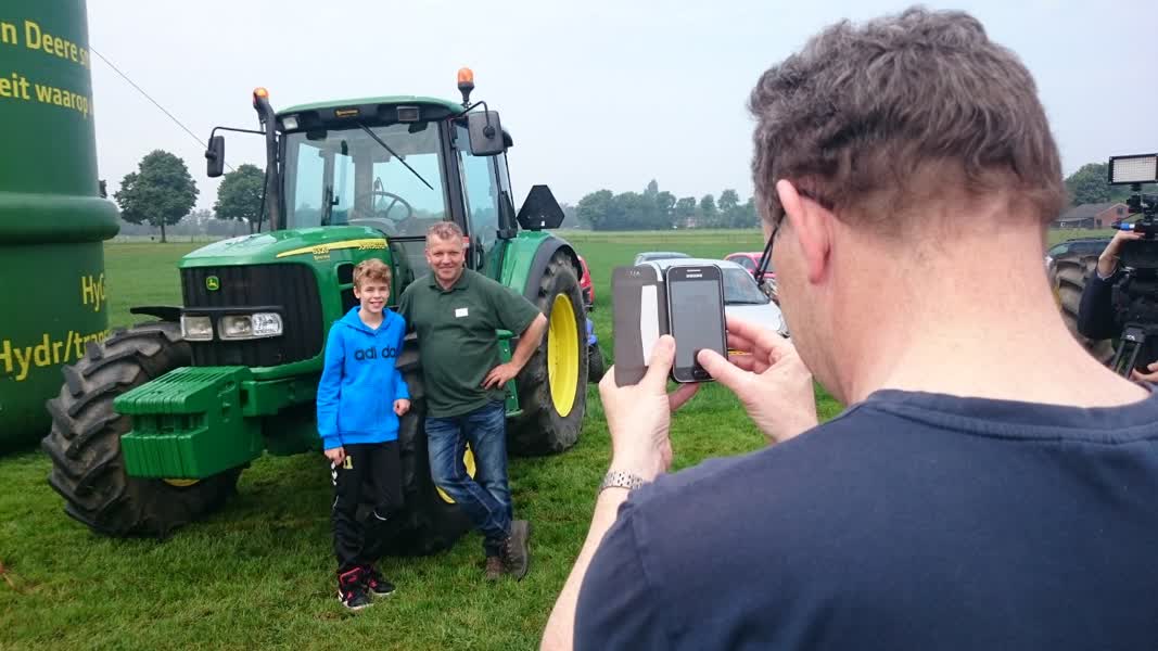 Op de boerderij van Vossers in het buitengebied van Silvolde is het zaterdagmiddag een drukte van belang. Liefhebbers drukken elkaar aan de kant om een glimp op te vangen van zowel de weerboer als de tientallen tractoren en landbouwapparaten die geëtaleerd staan. Weerboer Vossers blijft echter bij zijn eigen favoriete John Deere 6320. "Ik ben ook al dertig jaar met de vrouw", aldus Vossers. "Dat vind ik ook nog steeds de mooiste, dus met de tractor zal dat ook wel zo blijven."