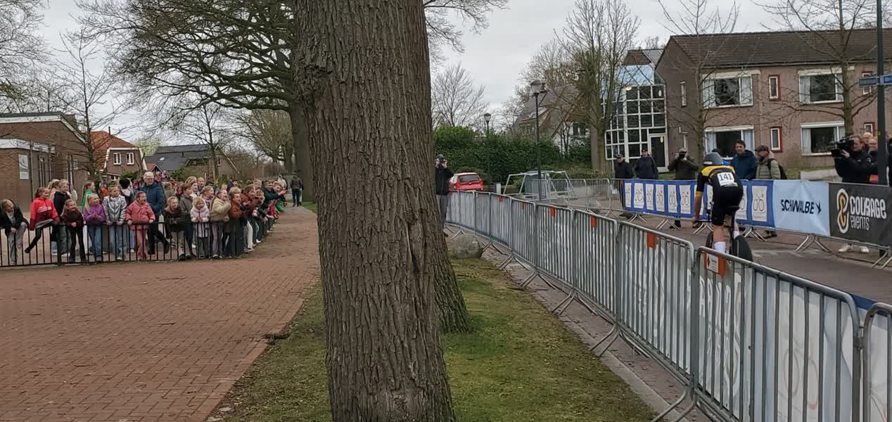 Hij heeft de zin nog niet uitgesproken of er klink weer gejoel vanaf het schoolplein. De Beltrumse schoolkinderen juichen voor de zoveelste maal voor een passerende wielrenner, met een rondje van 10,9 kilometer voor de boeg over lange stukken op boerenwegen, met af en toe een bocht. Inderdaad, een tijdritparcours bij uitstek.