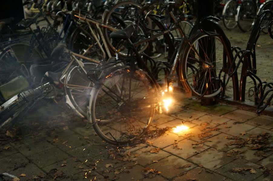 De schade is beperkt gebleven tot één fiets met brandschade. De politie is op zoek naar getuigen van het incident, daar de dader(s) nog onbekend is.