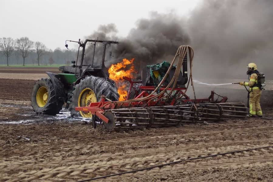 De oorzaak van de brand in de trekker is vooralsnog onbekend. Het landbouwvoertuig moest worden afgesleept.