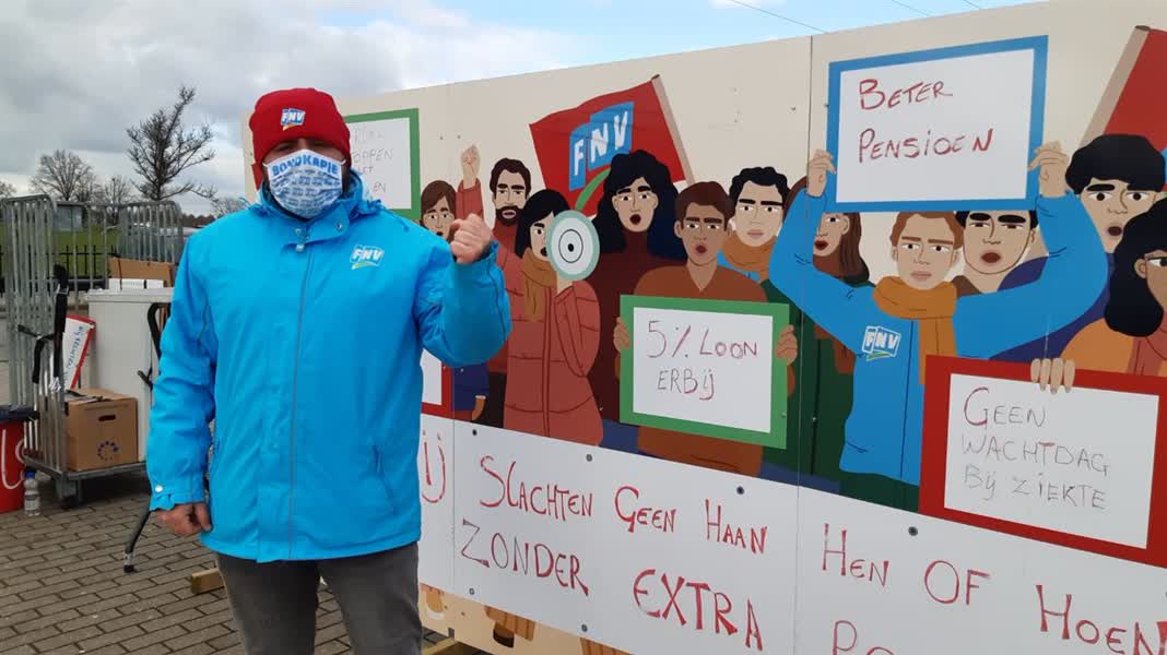 Een FNV-medewerker is woensdag naar eigen zeggen belaagd tijdens een actie bij kippenslachterij ESBRO in Wehl. Hij wilde namens de vakbond met personeel in gesprek om aandacht vragen voor de cao-onderhandelingen binnen de pluimveesector, maar dat werd hem niet in dank afgenomen.
