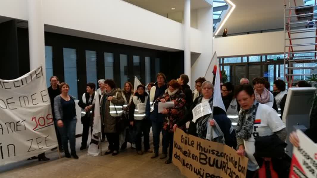 "De cliënten en de medewerkers mogen niet de dupe worden van het faillissement van TSN", gaat Van Dijk verder. "Het werk bestaat immers gewoon nog, want de cliënten hebben nog steeds zorg nodig. Daarom snappen we heel goed dat deze thuiszorgmedewerkers willen dat de gemeente voor een goede oplossing zorgt." De actievoerders blijven, naar eigen zeggen, in het gemeentehuis tot Bronckhorst het voorstel van Stichting Familiehulp accepteert.