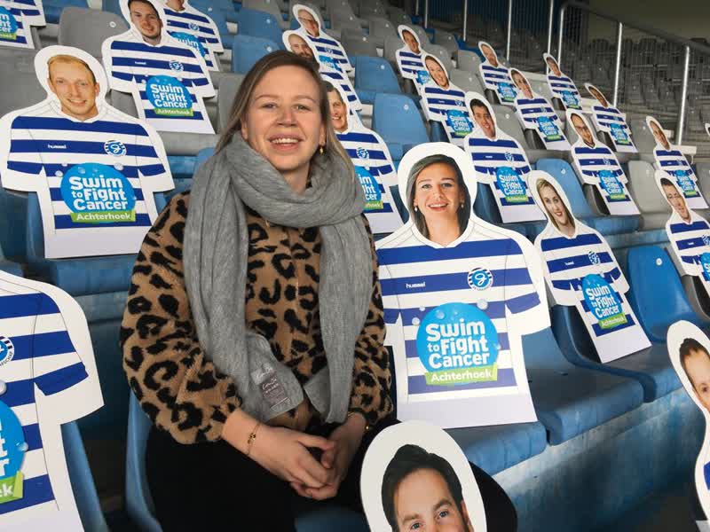Eén van de supporters die samen met haar collega's een stoeltje kocht is de 25-jarige Suze Meek. Sinds haar elfde is ze fanatiek supporter en mist ze geen enkele thuiswedstrijd van de Superboeren. Afgelopen najaar kreeg ze de diagnose borstkanker. "Daarna volgde een lange periode van behandelingen, waaronder zestien chemo's", vertelt Meek. "Eerst om de twee weken en daarna wekelijks." Inmiddels heeft ze een eerste operatie erop zitten en volgt binnenkort de tweede. "Dan hoop ik van de behandeling af te zijn."