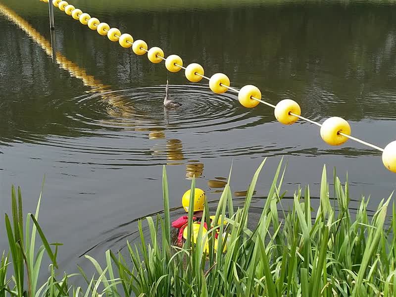 Een gans is dinsdag verstrikt komen te zitten in visdraad in de Berkel nabij Rekken. De Dierenambulance en brandweer moesten ter plaatse komen om het dier te bevrijden.