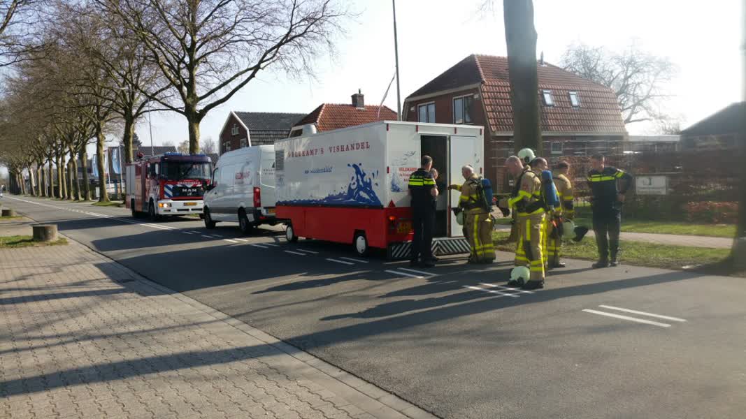 De man reed via de Dinxperlosestraatweg Aalten binnen toen hij achterin de wagen wat hoorde vallen. Hij heeft zijn wagen aan de kant gezet en zag achterin dat de gasfles gevallen was en vlam had gevat. De visboer heeft de brand zelf geblust en daarna de gasfles naar buiten gebracht.