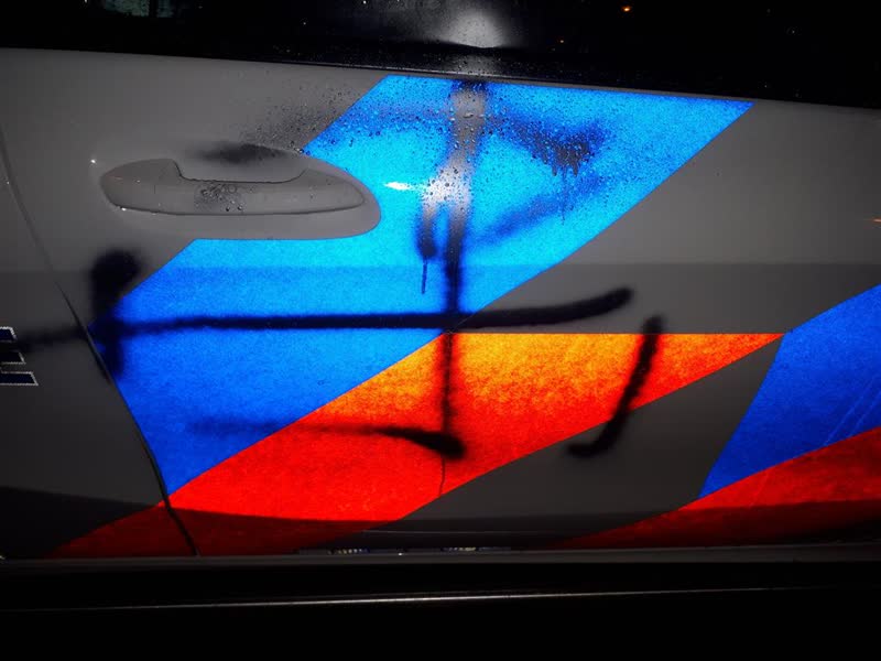 De politie laat weten dat de auto door een speciaal bedrijf wordt schoongemaakt. Er is aangifte gedaan van de bekladding en indien mogelijk zullen de kosten van het verwijderen van de graffiti worden verhaald op de dader of daders.