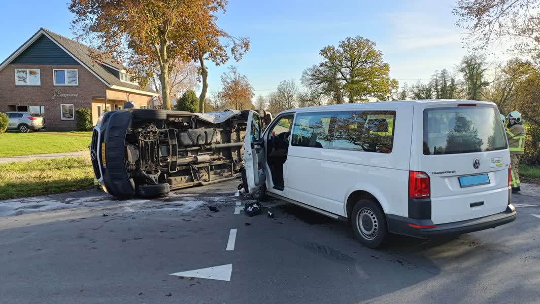 Bij een aanrijding met twee busjes in de buurt van Silvolde zijn woensdagmiddag geen gewonden gevallen. Een van de voertuigen is door de aanrijding op de zijkant terechtgekomen.