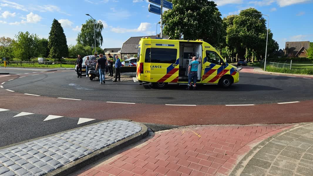 De bestuurder van de tweewieler reed achter een automobilist vanaf de Sint Jansgildestraat de rotonde op. De bestuurder van het busje wilde na de auto de rotonde oprijden, maar kwam in aanrijding met de scooterrijder.