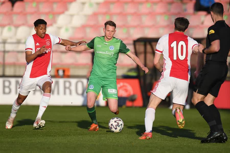 Het mogelijke promotieduel van De Graafschap begon in een laag tempo. Aan het begin van de wedstrijd was er geen hoogstand voetbal en vooral veel balbezit voor Jong Ajax. De eerste kans was er echter voor de Superboeren en kwam op naam van Ralf Seuntjens. Toch was het de thuisploeg die door een goal van Kenneth Taylor na drieëntwintig minuten op een 1-0 voorsprong kwam. Zoals vaker in een promotieduel van de Doetinchemmers moest er een achterstand worden weg gewerkt en stond de druk er vol op. Vlak voor rust hadden de bezoekers enkele kansen op de gelijkmaker, maar gingen met een achterstand de rust in.