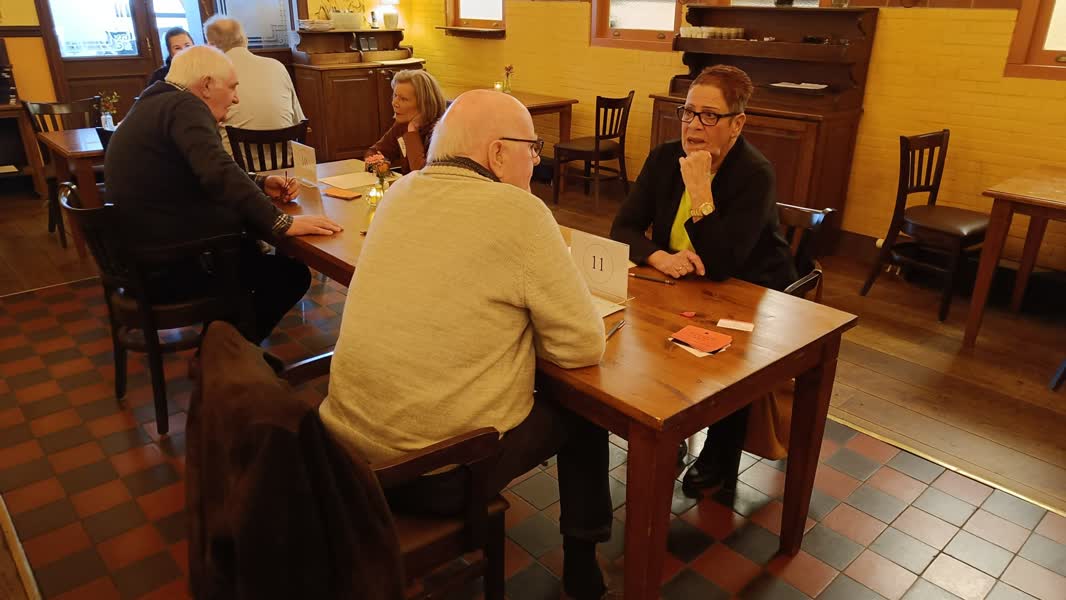 Dat er nog een stigma zit op het speeddaten, blijkt wel uit het feit dat de deelnemers liever niet hun naam geven. Waar de jeugd actief is op Tinder, is deze manier van daten volgens de organisatie juist geschikt voor de oudere doelgroep. De gasten krijgen ongeveer acht minuten om met elkaar in gesprek te gaan. “Je hebt weliswaar weinig tijd, maar je krijgt wel een indruk van iemand”, schetst een andere gast. “Face tot face contact is dan toch wel prettig.”