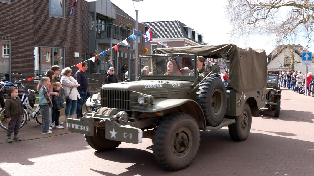 “De route is dezelfde route die tijdens de bevrijding ook afgelegd is”, zegt mede-organisator en veteraan Frank Aaldering. “Wij willen zo dicht mogelijk bij de waarheid blijven, het authentiek houden. Wij willen de mensen die het niet hebben meegemaakt bewust maken over er toen is gebeurt.” De oproep om zo veel mogelijk Nederlandse vlaggen uit te hangen is door het dorp beantwoord. Tot grote tevredenheid van Aaldering. “Wij hebben folders uitgedeeld in het dorp en mensen gevraagd de vlag uit te hangen. Ik ben blij om te zien dat er zoveel zijn”, aldus de veteraan. “Je wil er aandacht aan besteden en wat dingen voor elkaar krijgen. Dan is het hartstikke mooi om op deze manier de traditie in leven te houden.”