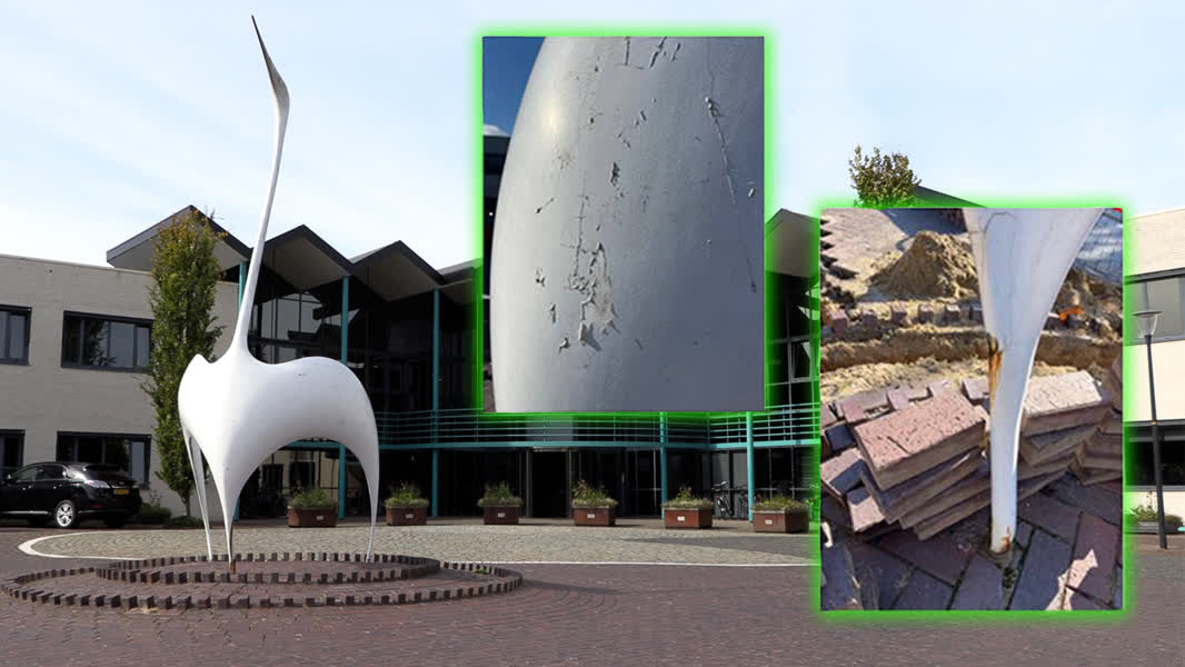 Waar veel inwoners namelijk aannamen dat dit een kunstwerk van ijzer is, blijkt dat niet het geval. Het is een werk van polyester met aan de binnenkant schuim en een ijzeren frame. “Dat het kunstwerk zo’n tijd weg is heeft vooral te maken met het feit dat het polyester en het binnenwerk in en in droog moet zijn om het goed te kunnen repareren. Hetzelfde geldt ook voor de laklaag die er op komt”, laat een woordvoerder van de gemeente Oude IJsselstreek weten. Het is nu eerst dus wachten tot het beeld van binnen helemaal droog is.