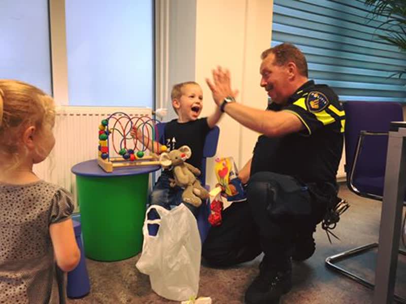 Samen met zijn familie bezocht de jongen de hulpverleners en betrokken en gaf ze een bedankje. "Gelukkig was één van de betrokken collega's aanwezig en kon hij zelf de lekkernijen in ontvangst nemen van Stan!", schrijft de politie op Facebook. "Het gaat je goed en we hopen dat je een grote, gezonde vent mag worden!"