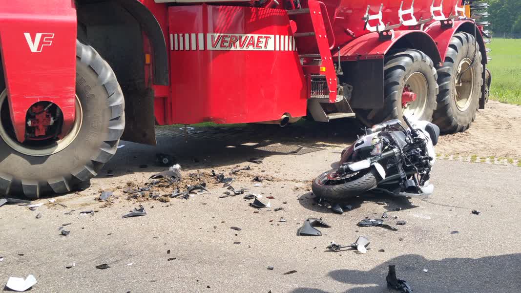 Het ongeval vond plaats op de Schaarsweg. De motorrijder zag het grote landbouwvoertuig te laat de weg op draaien vanaf een akker, schrok en ging onderuit. De motor liep bij de aanrijding flinke schade op.