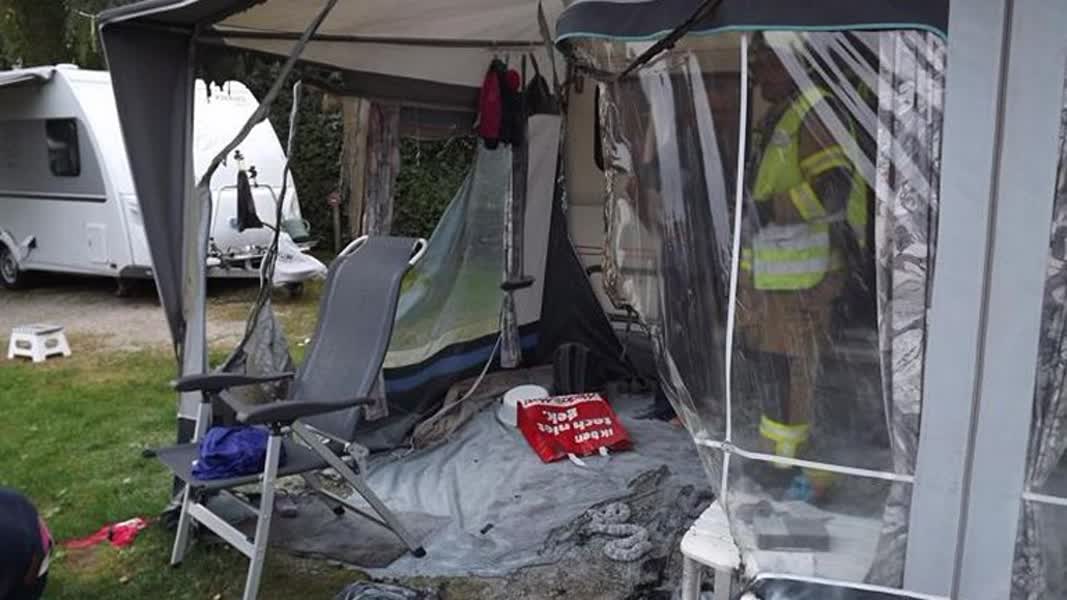 Het gezin vluchtte de tent uit en ontdeed zich van hun brandende kleding. De brand in de voortent is met een brandblusser gedoofd. Het dochtertje is volgens de Oostenrijkse politie met een traumahelikopter naar het ziekenhuis in Salzburg gebracht. De website Oberösterreichische Nachrichten schrijft dat de ouders met een ambulance naar het ziekenhuis zijn gebracht.