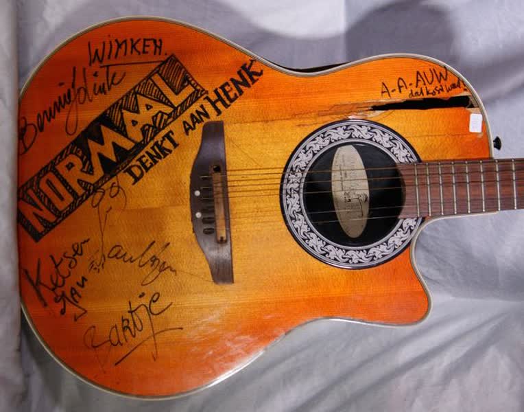 Normaal bood Westbroek de kapotte gitaar aan tijdens een van hun bezoekjes aan zijn radioshow 'Denk Aan Henk.' De gitaar kwam daarna in het café te hangen, maar omdat dat naar een club veranderde was er geen plek meer voor de in de tijd verzamelde spullen.