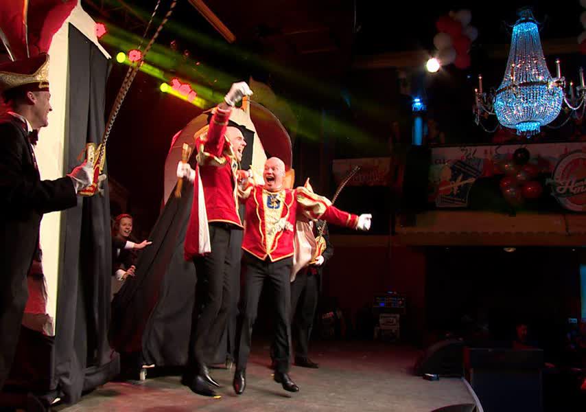 Ondertussen worden in het diepste geheim de nieuwe hoogheden via een achteringang City Lido binnengesmokkeld. Het zijn prins Bas I en adjudant Koen, het 58ste prinsenpaar van de carnavalsvereniging. “We weten dit al sinds september”, vertelt adjudant Koen Klein Tuente. “Nu is het dan eindelijk zo ver.” Prins Bas Klein Tuente had er weinig moeite mee om zijn mond niet voorbij te praten. “Natuurlijk wordt er altijd een beetje ‘gedraakt’ en ‘geouwehoerd’ in de vriendengroepen en gaat er wat rond in Groenlo, maar inmiddels redden we ons aardig met alle smoezen en het liegen.”